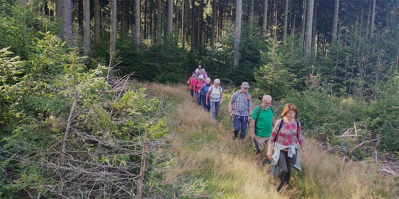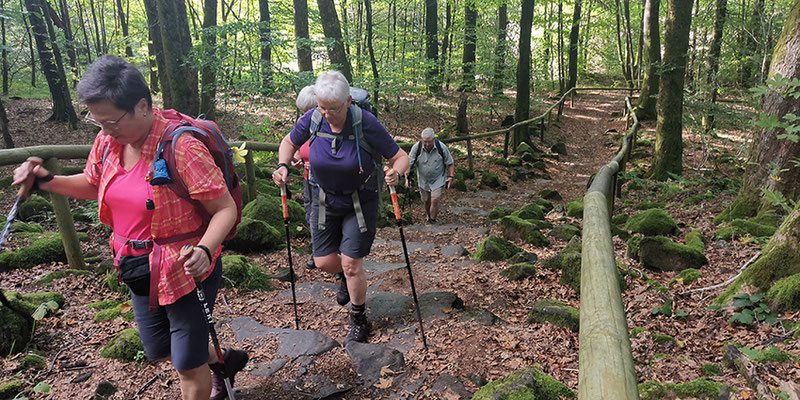 Die Langstreckenwanderer legten noch zwei Stunden drauf, um den steinigen Bilstein zu erklimmen und genossen die tolle Aussicht. Da es zum Schluss noch einmal einen kurzen, aber heftigen Anstieg zum Hoherodskopf gab, waren alle froh, auf die Schnelle vor der Busabfahrt noch ein kühles Getränk nehmen zu können.