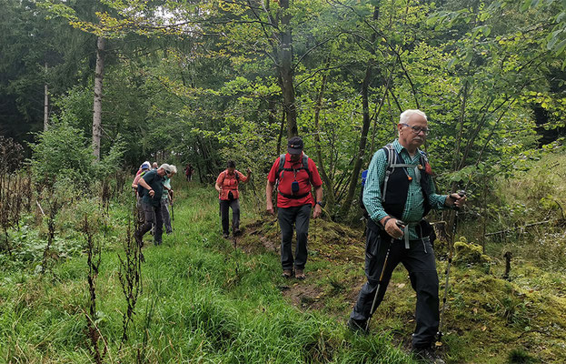 Hier am Stausee hatte die Imbißstube geöffnet, so dass wir unser Lunchpaket noch um das ein oder andere ergänzen konnten. Nach einer ausgiebigen Pause teilte sich die Gruppe auf. Ein Teil fuhr mit dem Bus zurück nach Schotten, der andere nahm den direkten Fußweg. Eine kleine Gruppe machte sich mit mir auf den längeren aber ausgesprochen schöneren Rückweg. Er verlief, nachdem wir den Talsperrenbereich verlassen hatten, überwiegend auf schmalen Pfaden und es machte viel Spaß, hier unterwegs zu sein.